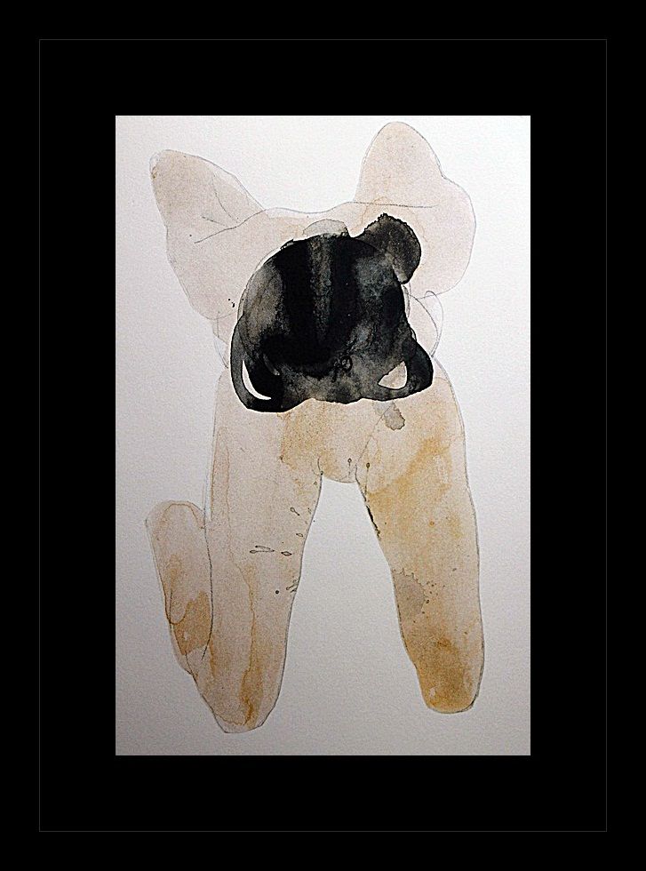 Erotic sketch lithograph by Auguste Rodin titled, "Kneeling Female Nude". The original was pencil and watercolor on paper, date unknown. Comes gallery framed black on black.