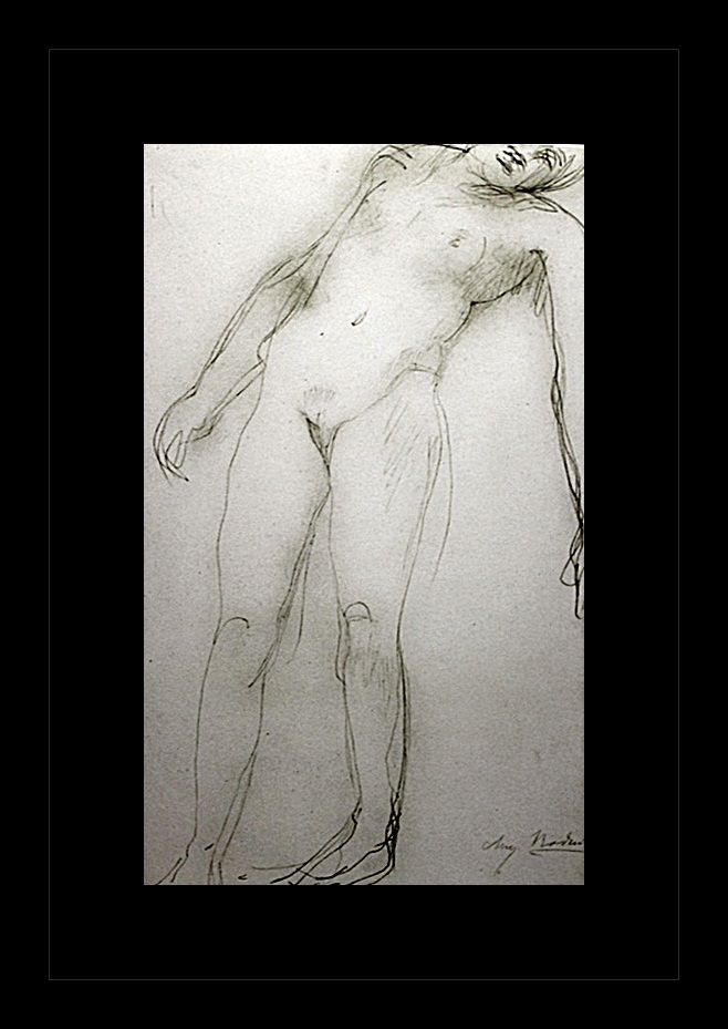 Erotic sketch lithograph by Auguste Rodin titled, "Nude Study". The original was pencil on paper. Comes gallery framed black on black.