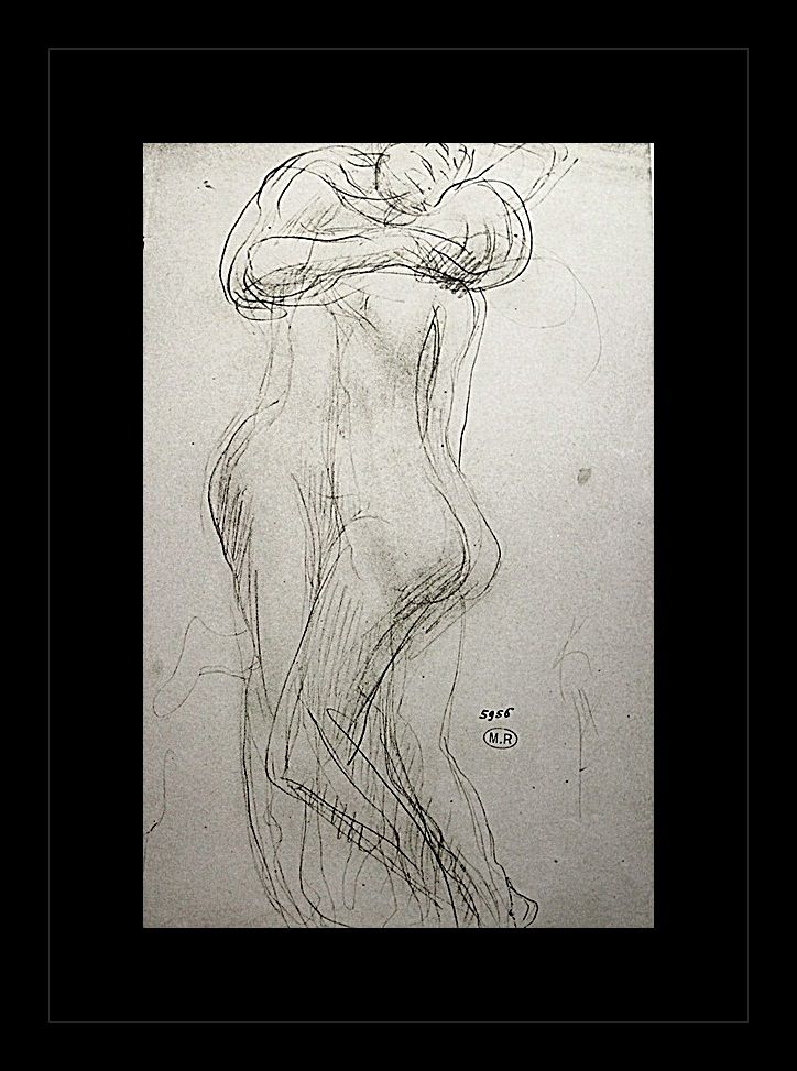 Erotic sketch lithograph by Auguste Rodin titled, "Couple Embracing". The original was pencil, watercolor and gouache on paper. Comes gallery framed black on black.