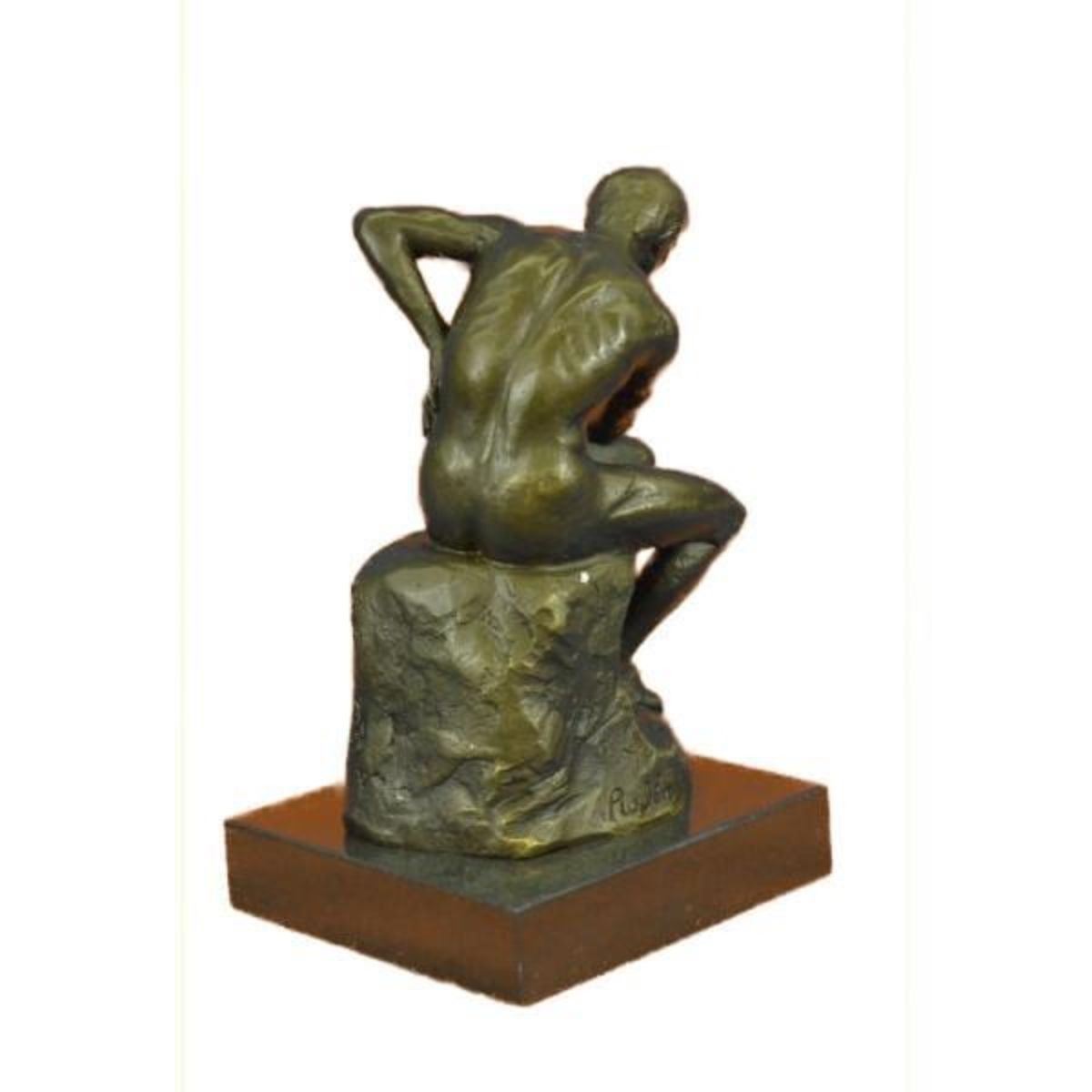 Often used as a symbol of philosophy Rodin's "Thinker" depicts a man in deep thought is quite popular across the world. The man is deep in thought contemplating an internal conflict that has been plaguing his mind. He is leaning on his right fist with his left arm laying on his thighs while sitting on a large rock. The detail in this piece highlights the man's musculature and facial features. The classic bronze sculpture was cast using the lost wax method. It rests on a black marble base. It is signed Rodin. Condition: this sculpture is in perfect condition. Bronze dimensions with marble base:height 5.5" x width 3.25" Marble dimensions: 3" x 3" Height without base: 4.5" Weight : 3 lbs