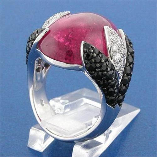 <p>This Rodney Rayner signed original is a masterfully-made Cabochon cut rubellite set in 18K white gold. Stamped RHR, this ring is accented with black and white diamonds. This is a cocktail ring assured to attract compliments to any wearer.
