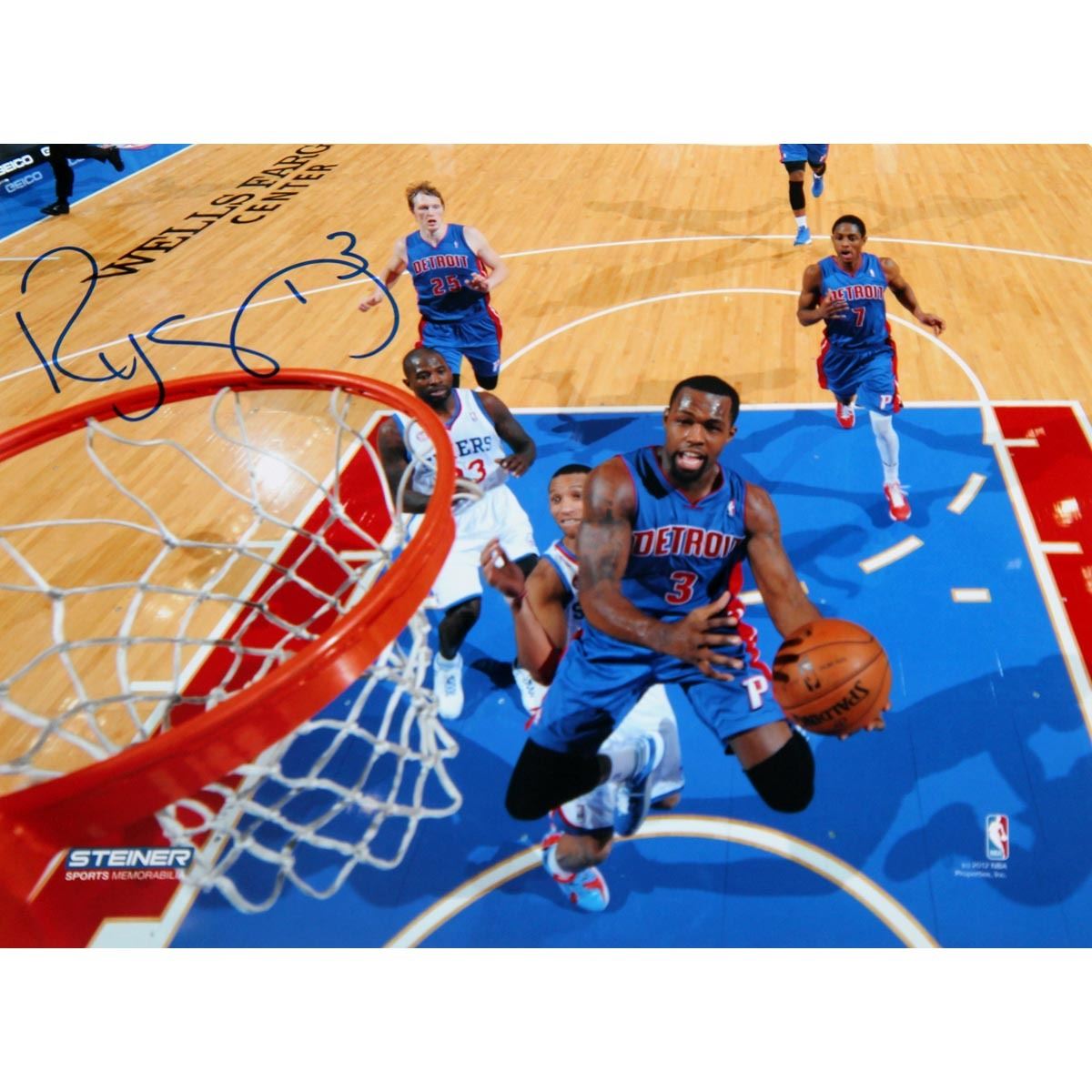 Rodney Stuckey Detroit Pistons at the Basket in Blue Jersey Signed 8x10 Photo (Getty #158174819)
