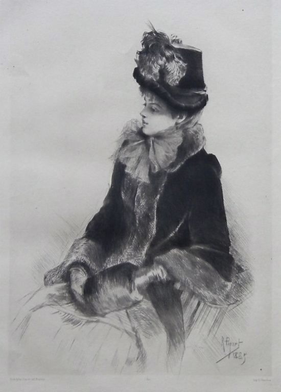 Rodolphe Piguet Original Drypoint (Portrait De Femme) - Original Etching And Drypoint. This Beautiful Piece Was Executed By Rodolphe Piguet (Sometimes Spelled Piquet) In 1885 And Was Printed On Laid Paper By Charles Chardon. Image Size: 12 1/2 X 8 5/8 Inches (317 X 220mm). Signed In The Plate - Professionally Framed & Matted - Comes With Certificate - -
