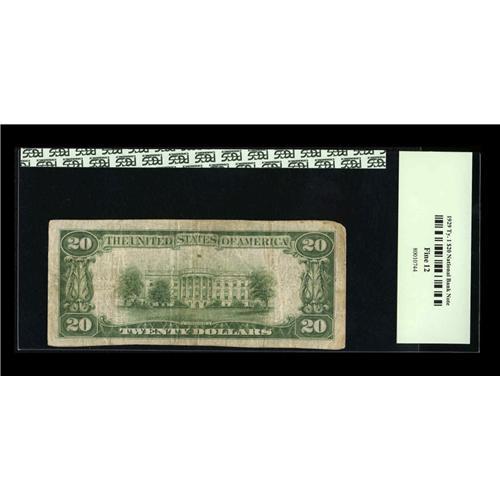 <B>Roebling, NJ</B></I> - $20 1929 Ty. 1 <B>First NB & TC</B></I> Ch. # 11620<BR>A <B>PCGS Fine 12</B></I> from the only issuer in this Burlington County locale. This note bears the second of two titles under which the institution ordered the 1929 series.