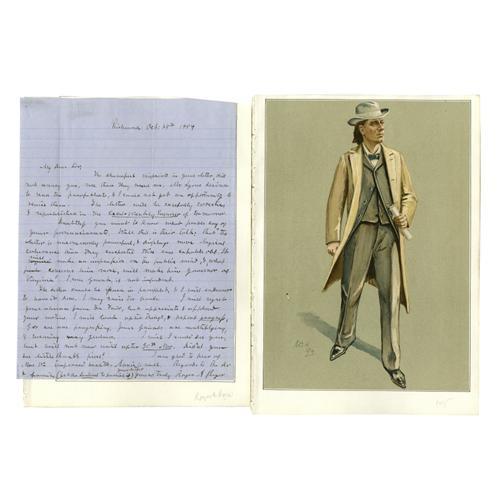 <B>Roger Atkinson Pryor Autograph Letter Signed </B></I> "<I>Roger A. Pryor.</B></I>" One page handwritten letter, measuring 7.5" x 9.8", dated October 28, 1864, from Richmond Virginia. Pryor was many things during his lifetime, including: jurist, politician, editor, and Confederate general. Pryor was an outspoken supporter of the South, which led to many duels and confrontations during his lifetime. He was taken as a prisoner of war, and released shortly before the South surrendered. This letter contains content regarding the publication of a letter; it reads in part, "<I>The shameful misprints in your letter, did not (illegible) you, more than they vexed me. Mr. Lyons desired to read the proofsheets, & I could not get an opportunity to revise them. The letter will be carefully corrected & republished in the Semi-Weekly Enquirer of tomorrow.</B></I>" The letter is accompanied by a print of Pryor.<BR><BR>The letter is in fine condition; the ink is as crisp and dark as the day it was written; the usual folds are present; the letter is backed by a white sheet of paper.