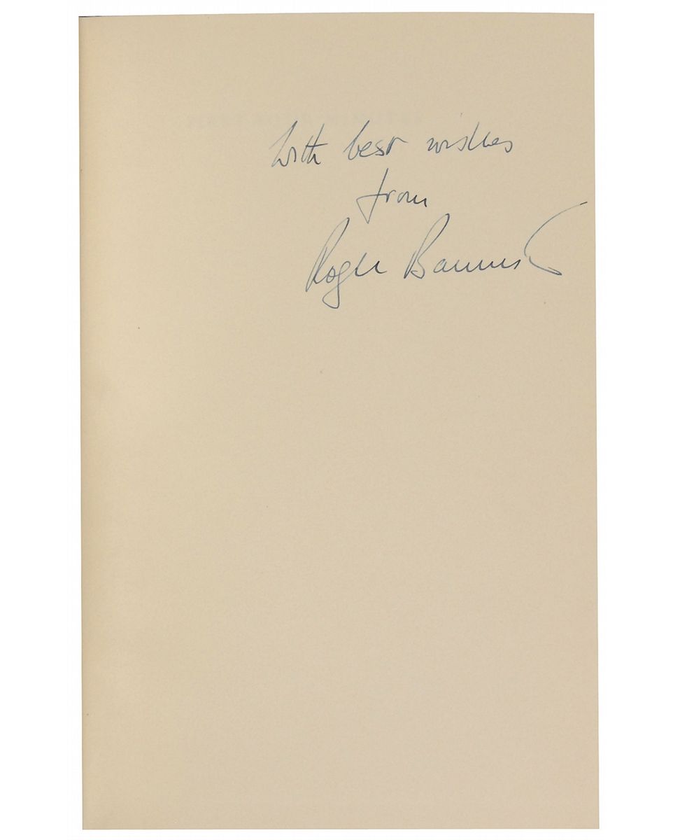 Signed book: First Four Minutes. First edition. London: Putnam, 1955. Hardcover with dust jacket, 5.25 x 8, 223 pages. Signed on the first free end page in fountain pen, “With best wishes, from Roger Bannister.” In fine condition.