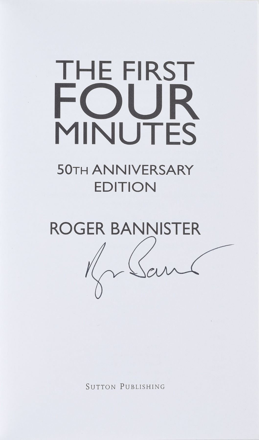 Signed book: The First Four Minutes. 50th anniversary edition. England: Sutton, 2004. Hardcover with dust jacket, 5.5 x 8.75, 244 pages. Signed on the title page in black ink by Bannister. In fine condition.