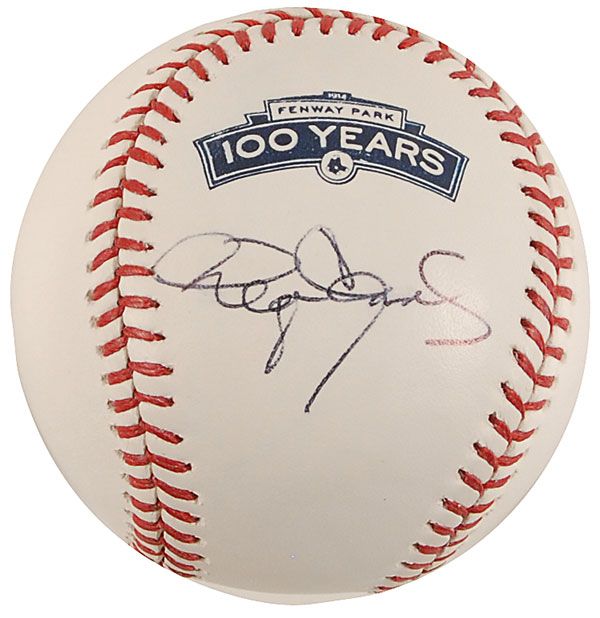 Official Rawlings Major League Fenway Park 100 year commemorative baseball signed in blue ballpoint on a side panel. In fine condition.