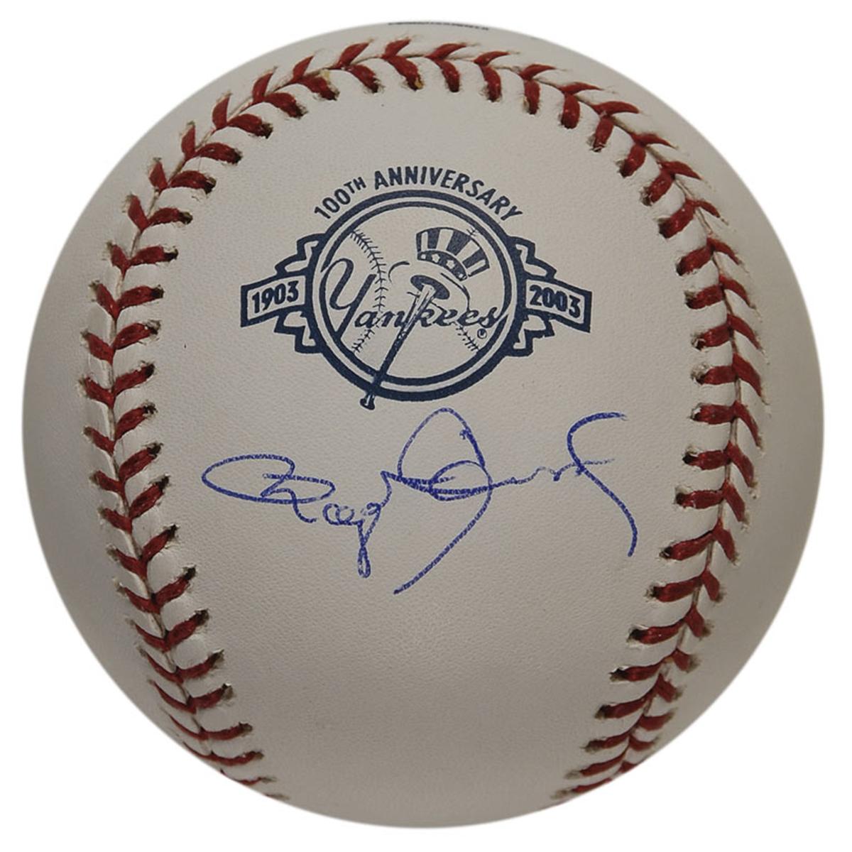 Official Rawlings Major League baseball celebrating the 100th anniversary of the Yankees, signed in blue ballpoint on a side panel. In very fine condition, with Steiner and MLB holograms affixed to ball.