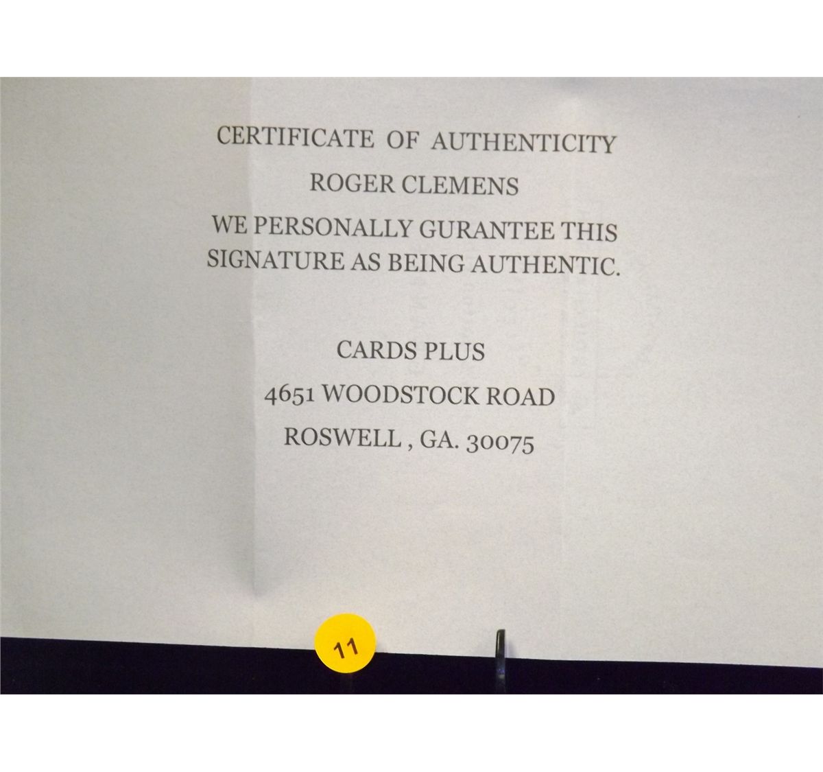 Roger Clemons Autographed Photo. 8x10 Color Photo. Appraised or estimated retail value $150. COA by Cards Plus. All Sales Final. Please see terms and conditions of auction.
