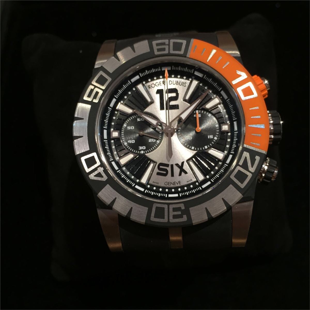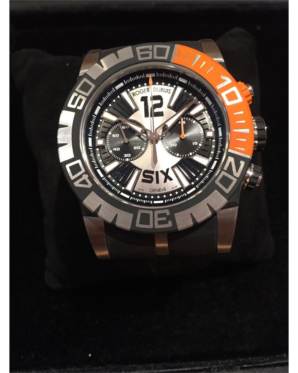 Roger Dubuis Easy Diver. Large diameter (44mm) this is one of the most Interesting diver dial made with the 12 in number and the six in letters. The movement in house has a RD caliber. Brand new with papers. No box.