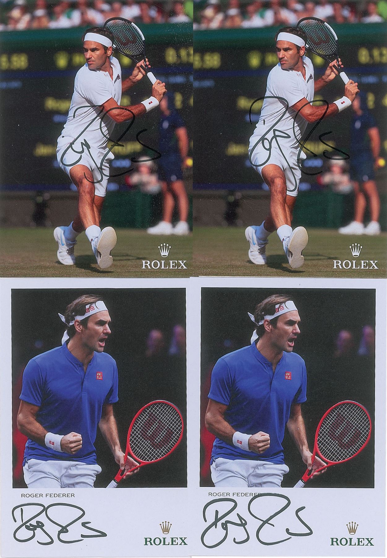 Group of four color cardstock 4 x 5.75 Rolex promo photos, individually signed in black felt tip by Roger Federer. In overall very fine condition.