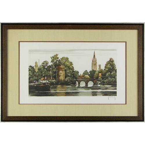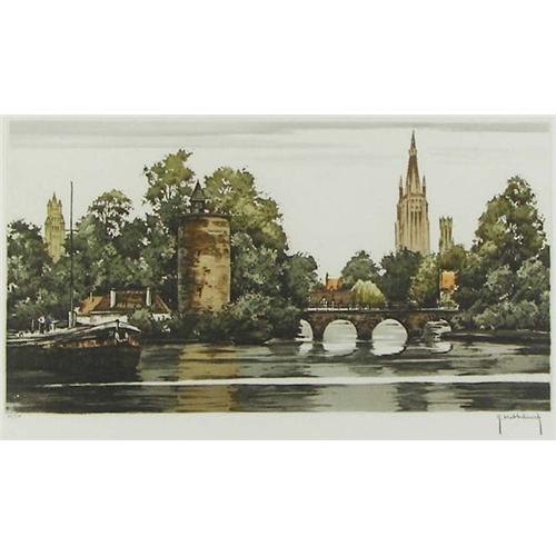 Roger Hebbelinck (b.1912) (Belgium) Etching, European Landscape, #84/350, image size 10 1/2" x 19 5/8", pencil signed