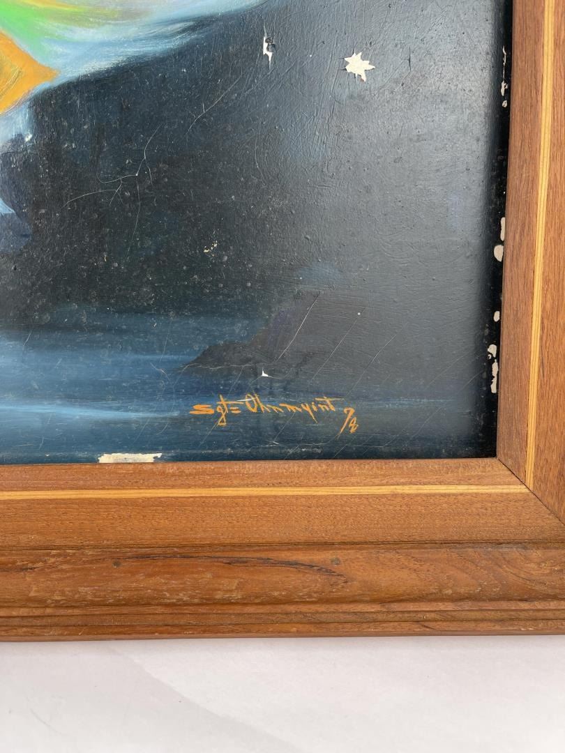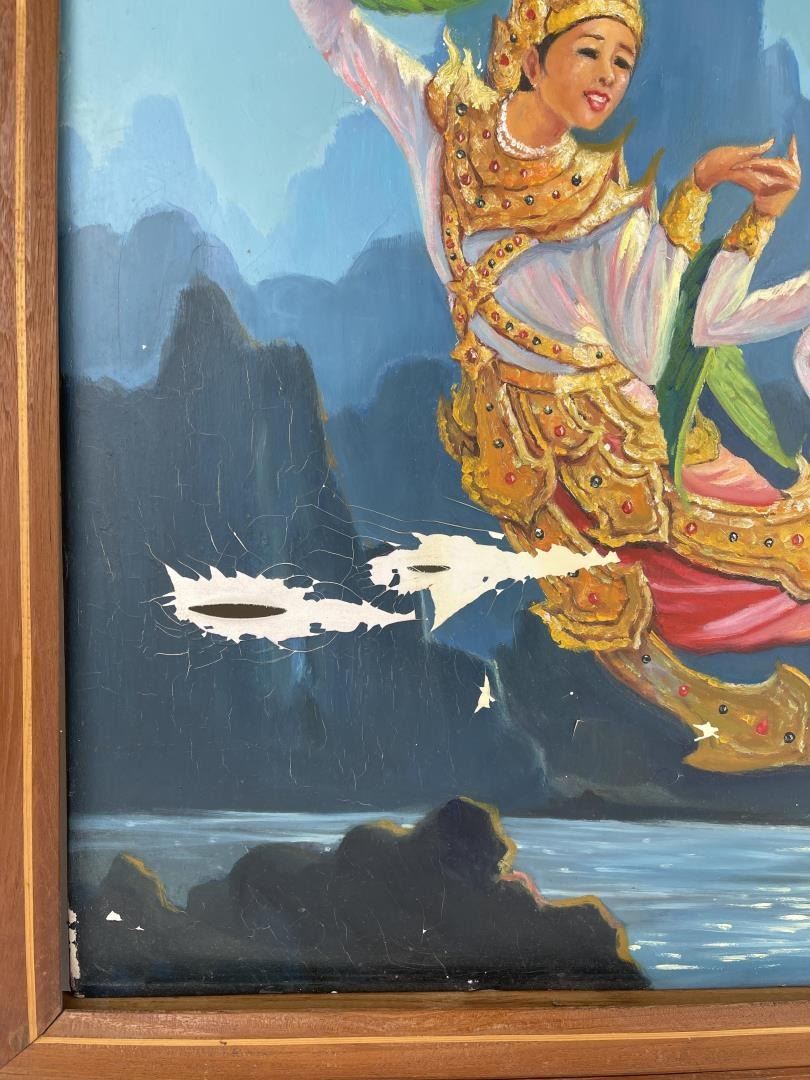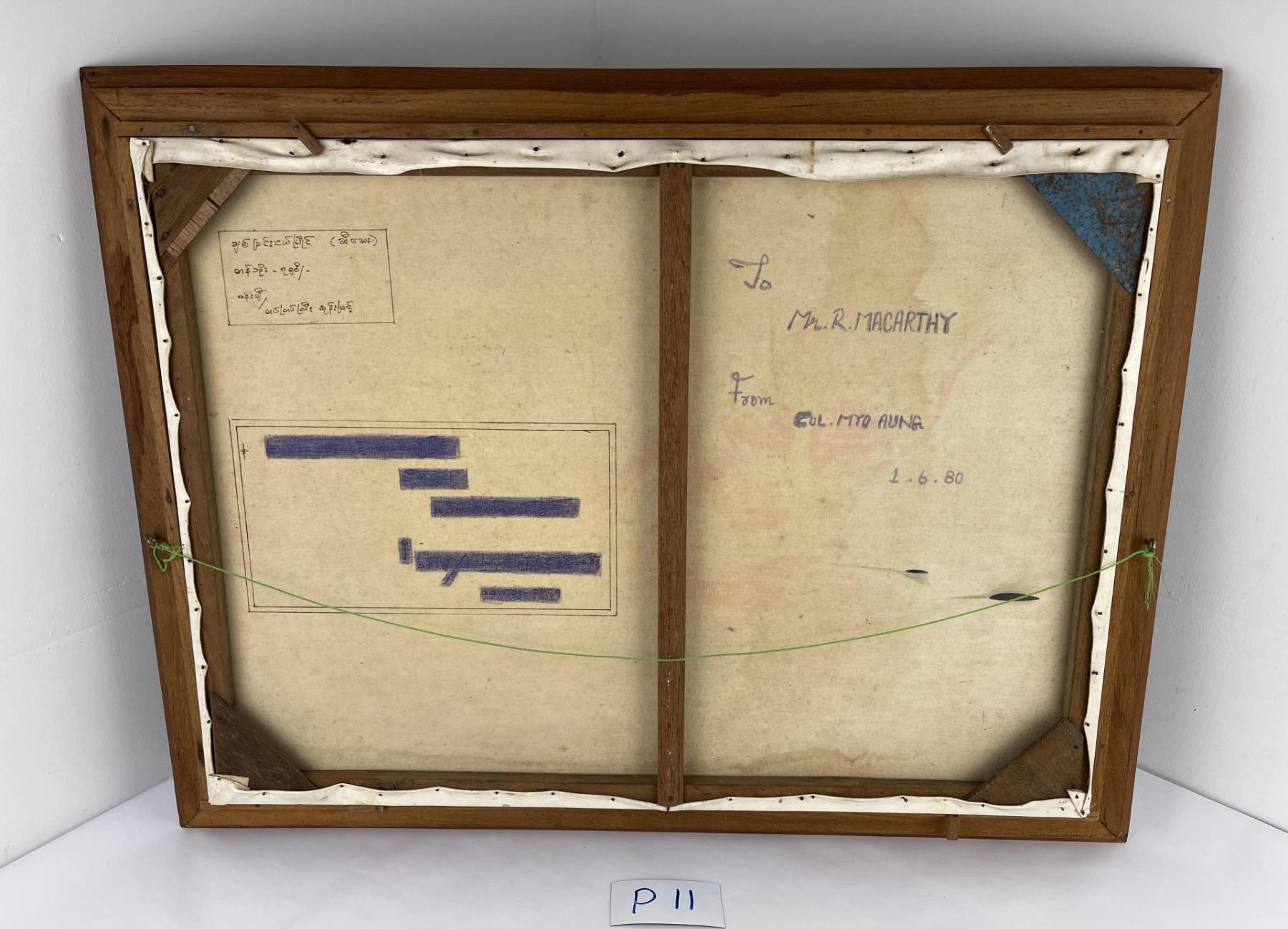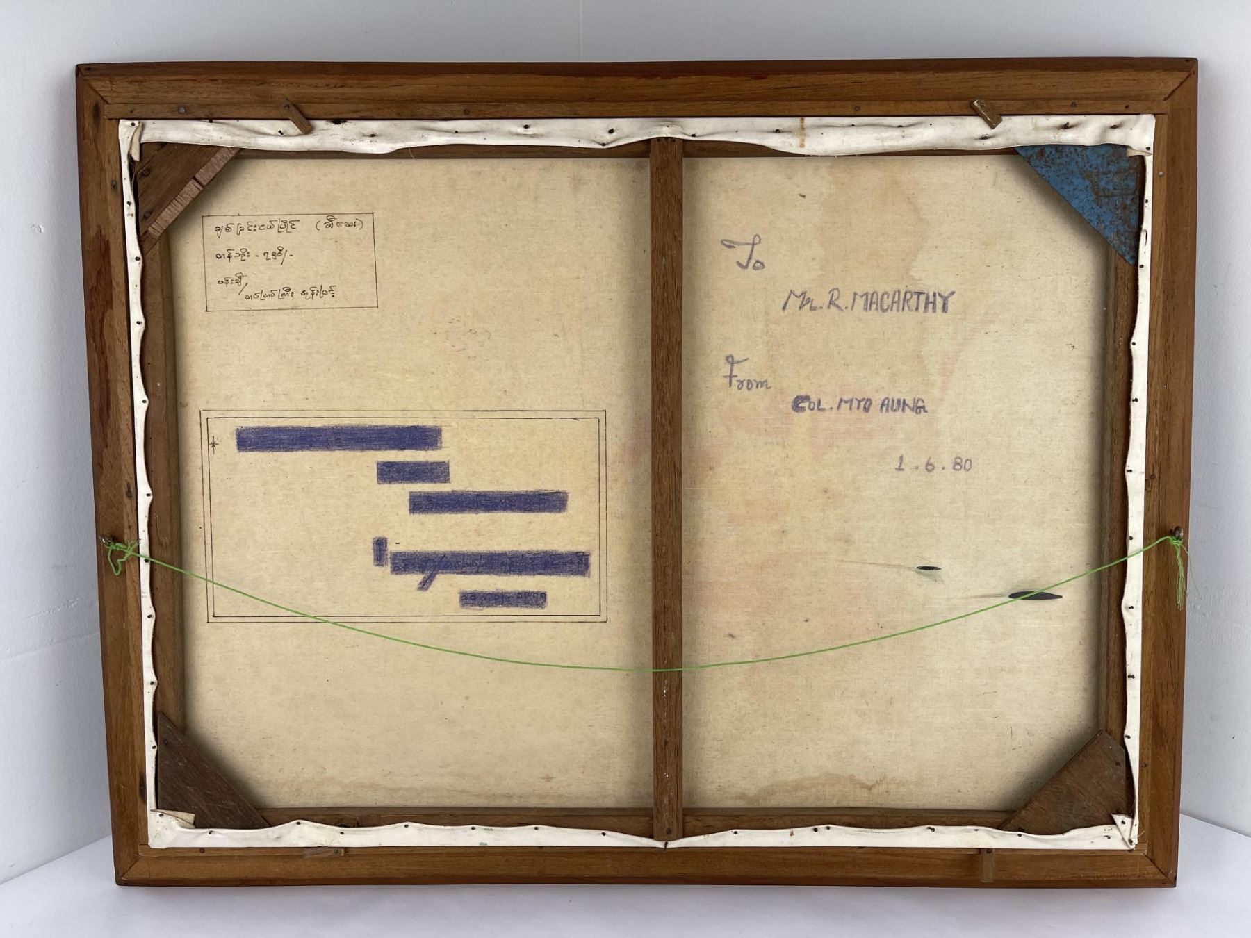 Dedication on the back as shown. Given by Colonel Myo Aung. 29 1/2" by 38" framed.