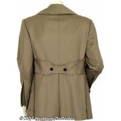 <B>Roger Miller Taupe Jacket</B></I>. Roger Miller is probably best remembered for his humorous novelty songs, such as "Dang Me" and "Chug-a-Lug", which overshadow his great talent as a songwriter. Prior to making a name for himself as a solo artist, he wrote hits for Faron Young, Ernest Tubb, and Jim Reeves. His biggest hit, "King of the Road", was recorded in 1965, and remains a classic today. His career was cut short by his premature death in 1991 but he is still beloved by fans the world over. This taupe coat and tie was designed for and worn by Roger Miller. Coat shows normal age-wear but is in otherwise good condition. <BR><BR><B>Important notice:</B> Heritage usually auctions material at the rate of 200-250 lots per hour. On some occasions eBay Live bid software or the Internet may not be able to keep up with the pace of the auction. We recommend placing a realistic absentee bid now as insurance to avoid disappointment. Occasionally the auctioneer may eliminate or reject an eBay Live bid, and the auctioneer may also reopen a lot after the close of the eBay live bidding (usually because we missed an audience bid), and may reject your bid even if it shows you as the winning bidder. By bidding via eBay Live, you agree that Heritage may award the lot to another bidder at its sole discretion under the circumstances described above or any other reasonable circumstances. Since eBay bids are not shown to us until we open the lot on the floor, we treat those bids just like floor bids. In most cases the floor responds before the eBay bid is presented to us, due to Internet lag time, so for consistency we have made it a policy that floor bids are always considered first over tie eBay live bids. Also please note that all Heritage lots purchased through eBay Live carry a 24.5% Buyer's Premium. Please make sure you read the Terms and Conditions before you bid.
