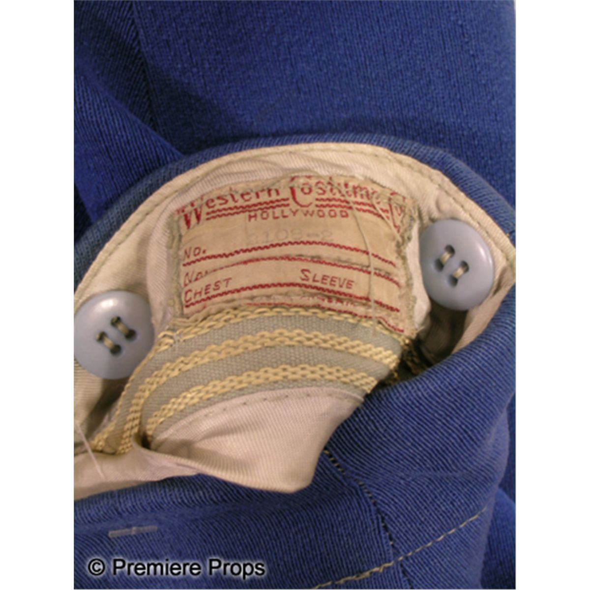 Premiere Props nor the consignor makes any warranties, expressed or implied, as to merchantability or fitness for a particular purpose, the correctness of the catalogue or other description of the physical condition, size, quality, rarity, importance, medium, provenance, exhibitions, literature, historical relevance of any property, intended use, condition of the property (including any condition report), correctness of description, origin, measurement, quality, rarity, importance, exhibition, relevance, attribution, source, provenance, date, authorship, condition, culture, genuineness, value, or period of the property. Additionally, neither Premiere Props nor the consigner makes any representation or warranty, expressed or implied, as to whether the Bidder acquires any copyrights, including but not limited to any reproduction rights of any property, or other intellectual property (including exhibition or reproduction rights) or whether the property is subject to any limitations such as ‘droit morale’ (moral rights) or other rights affecting works of art. Premiere Props does not make any representation or warranty as to title.
