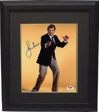 Sir Roger Moore is most notable role is that of the British secret agent James Bond, whom he portrayed in seven feature films between 1973 and 1985; he remains the oldest actor to have played the character. Moore was cast as Bond in 1973 and portrayed him in Live and Let Die (1973); The Man with the Golden Gun (1974); The Spy Who Loved Me (1977); Moonraker (1979); For Your Eyes Only (1981); Octopussy (1983); and A View to a Kill (1985). Roger Moore has hand signed this James Bond 8x10 Photo. PSA Hologram and Certificate of Authenticity. Custom Black Mat and Premium Black Color Framed as shown.