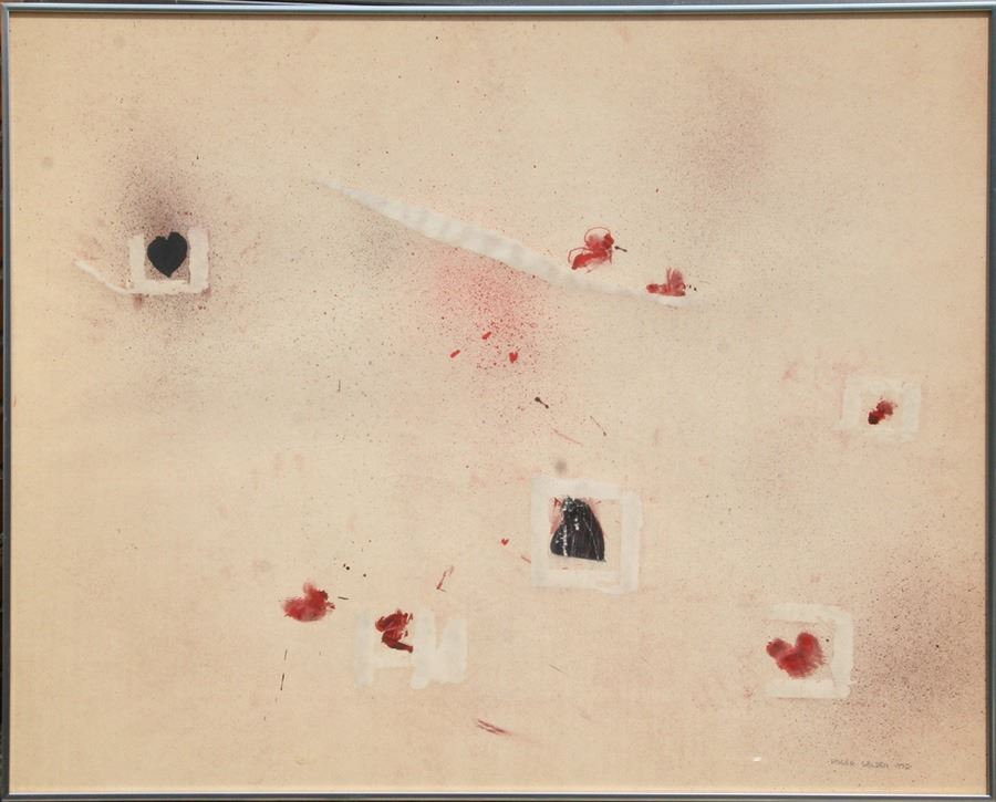 Roger Selden, Red Hearts, Ink and Acrylic Painting