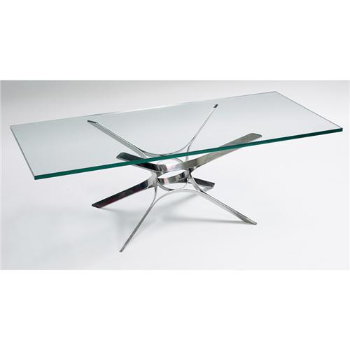 Roger Sprunger coffee table, by Dunbar, c.1970, sculptural stainless steel base supports rectangular glass top,60in.w x 26in.d x 19.5in.h,very good condition