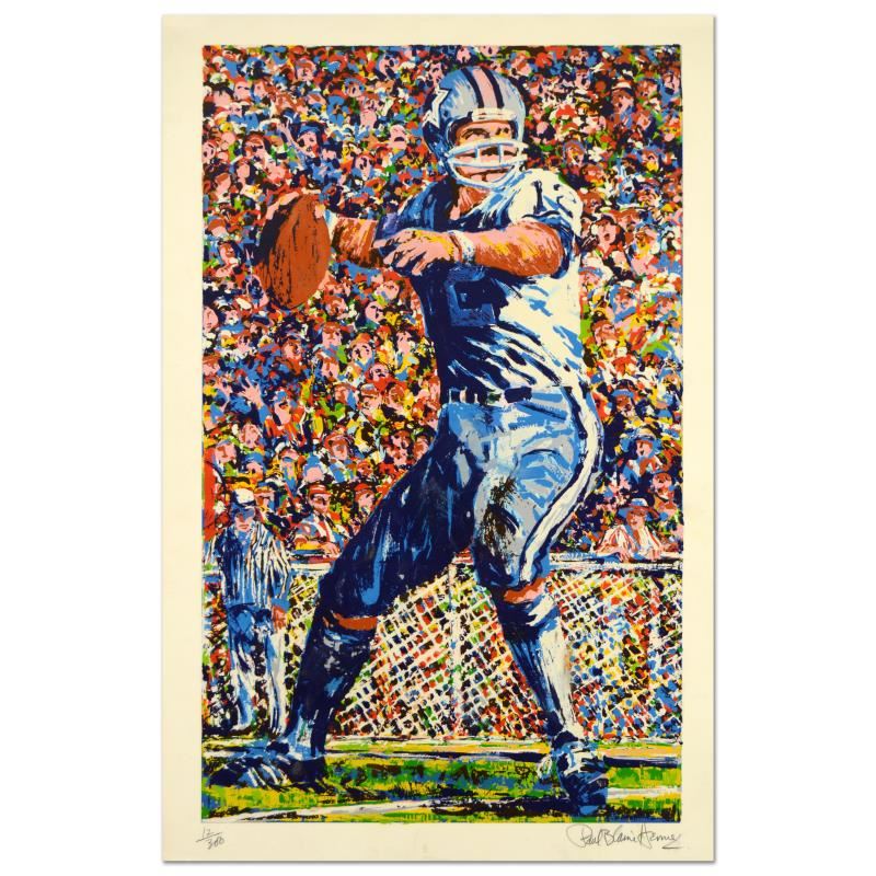 "Roger Staubach" is a limited edition serigraph on paper by Paul Blaine Henrie (1932-1999), numbered and hand signed by the artist. Includes Letter of Authenticity. Measures approx. 26" x 40" (border), 22" x 35.5" (image). Please note: There due to the age of this piece there may be minor smudging, discoloration or creasing in the border area.