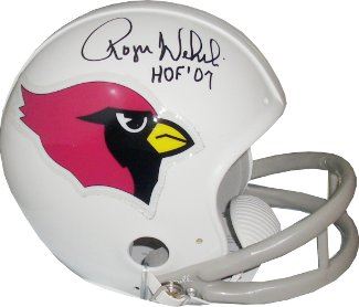 Roger Wehrli's outstanding attribute was his speed. Originally expected to be taken in the third round, he ran a 4.5 40 yard dash and vaulted into the first round. In his career, Wehrli had 40 career interceptions for 309 yards and recovered 19 fumbles. He was elected to the Pro Football Hall of Fame in 2007. When inducted into the Pro Football Hall of Fame, he became the second Missouri player to be elected. Wehrli was inducted into the Cardinals Ring of Honor on October 14, 2007. Roger Wehrli has hand signed this St. Louis Cardinals TB 2bar Mini Helmet with HOF 07 inscription. MAB Hologram and Certificate of Authenticity from Athlon Sports.