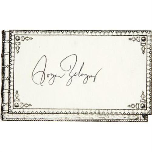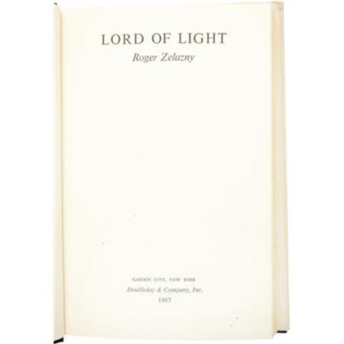 <B>Roger Zelazny: First Edition of <I>Lord of Light</B></I></B></I> <B>with Signature Card Laid In</B></I> (Garden City, New York: Doubleday, 1967), first edition, 257 pages, blue cloth with silver lettering on spine, 8vo (5.5" x 8.5"), dust jacket. Signature card is signed "<I>Roger Zelazny</B></I>." This epic novel by Zelazny earned him the Hugo Award for Best Novel in 1968 and a Nebula Award nomination as well. The book is in fine condition, with minimal toning to the textblock edges. The upper & lower folds of the dust jacket interior show tape residue, not affecting the exterior appearance, and minor shelf wear is present at the corners and spine, else fine. A handsome Zelazny signed first edition of his second Hugo Award winner.<BR><BR><b>Shipping:</b> Books & Catalogs (<a target="_blank" href="http://www.heritageauctions.com/common/shipping.php">view shipping information</a>)