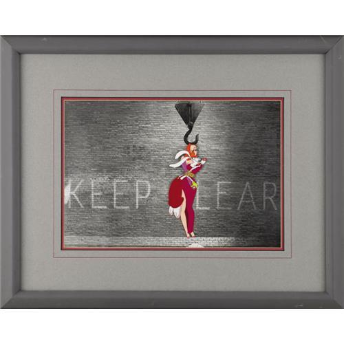 <B>Roger and Jessica Rabbit "Who Framed Roger Rabbit?" Production Cel with Production Background Original Art (Walt Disney, 1989).</B></I> Roger and Jessica Rabbit are united again, but unfortunately, they're in a really tight squeeze. Image area of 14.5" x 10". Framed, and in Excellent condition.