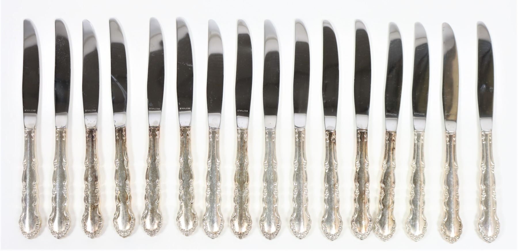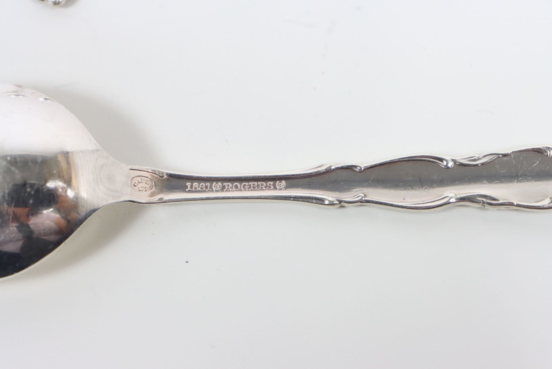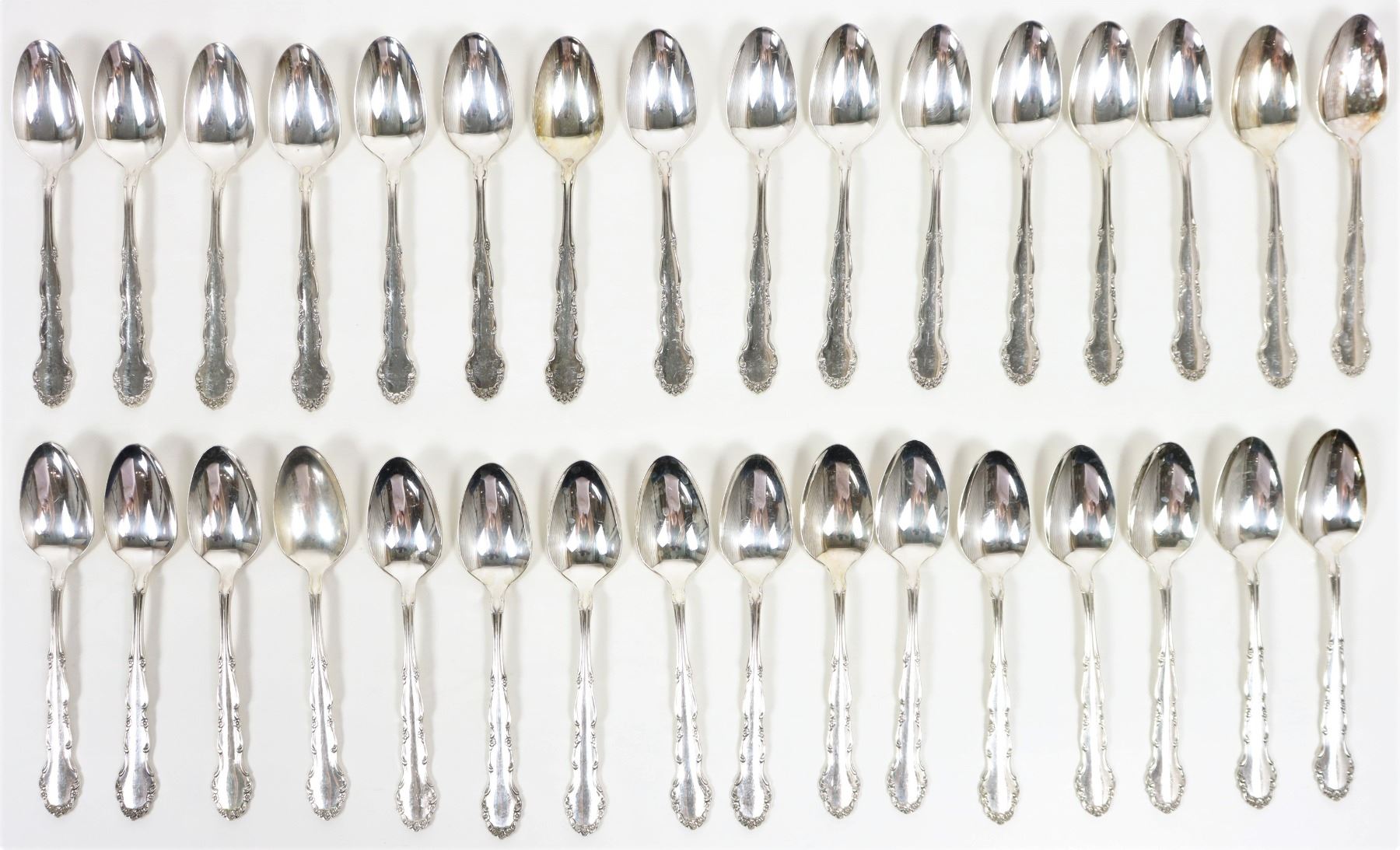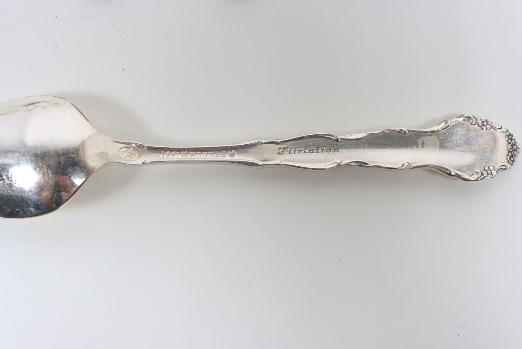 90 piece set of Rogers Bros. silver plate flatware in the 'Flirtation' pattern. Comes in lovely lined display box with open top and drawer.