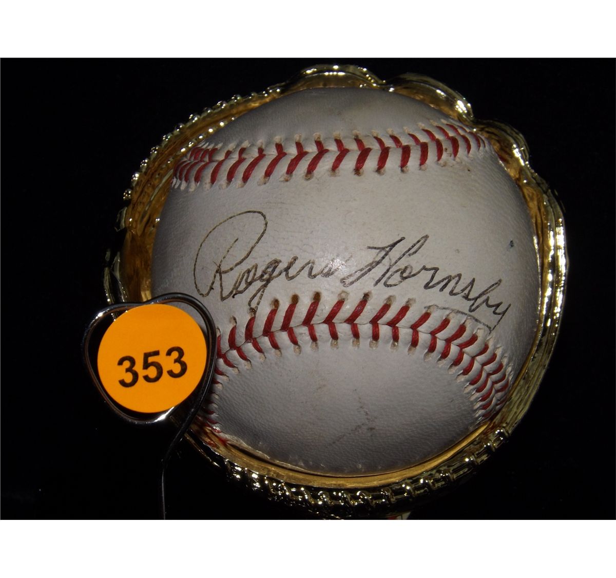 Rogers Hornsby Autographed Baseball. Wilson Official Regulation League Ball. Appraised or estimated retail value $6000. COA by Christopher Morales. All Sales Final. Please see terms and conditions of auction.