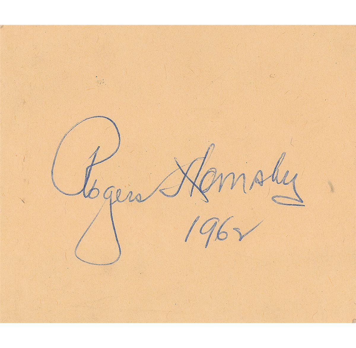 Choice ballpoint signature, “Rogers Hornsby, 1962,” on an off-white 3.5 x 3 card. In fine condition.