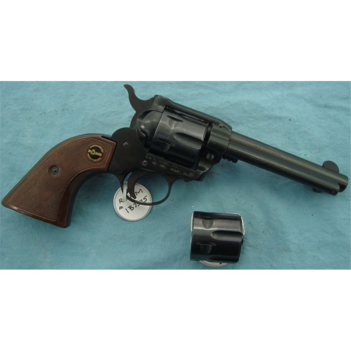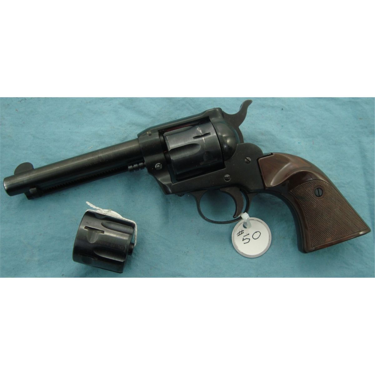 #IB7375; 22 LR/22 mag. Single action w/4 3/4" bbl. Plastic grips & blued metal finish. In good overall condition.