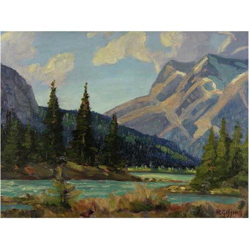 [Canadian ASA 1895-1967] NEAR 3 SISTERS (BOW VALLEY-ALBERTA); 1948 Oil on board 12 x 16 in. Signed & dated.