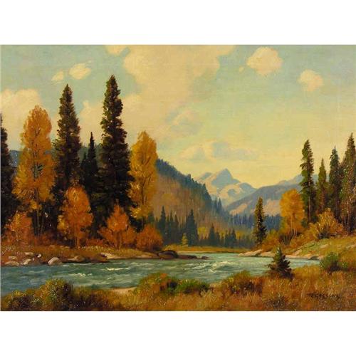 Canadian ASA [1895-1967] AUTUMN IN THE FOOTHILLS (GHOST RIVER) oil on canvas 18 x 24 in. (45.7 x 61 cm) signed & titled Provenance: Commissioned directly from Gissing in the 1950's, by descent to the current owner.