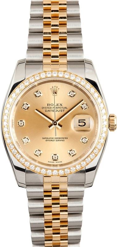 Rolex 116243 SS/YG 36MM Datejust with Diamond Bezel