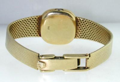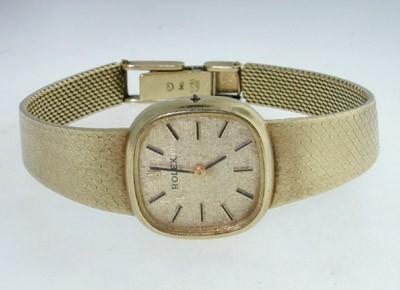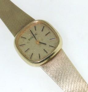 Rolex 14K Yellow Gold Wrist Watch.The total watch's weight is 30.7 grams.The measurements of watch head is 20 x 20 mm and 5 mm thick.The length of watch: 5.5".swiss made.Water Resistant.Chain is 9 mm wide