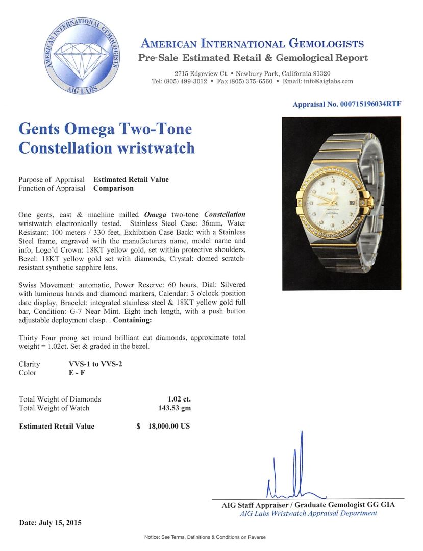 SAA sends most jewelry, watches, accessories and loose stones out to a third-party for appraisals. All such lots are sold AS IS and may have been worn, been previously repaired, altered, customized (including having been modified with after-market stones or had the bezel changed in its entirety on certain jewelry or watches), or been embellished. For purposes of our actions, the terms custom, modified, or after-market may be used interchangeably. Such wear, repair or changes may display varying levels of evidence. The bidder hereby acknowledges that the absence of any reference to the condition of a lot does not imply the absence of wear, repairs, customization, or defects. While SAA makes every effort to call to the attention of bidders the use of after-market parts in jewelry and watches sold, the use of such parts or stones shall not constitute a warranty or representation that the items are original in their entirety. These modifications, customizations, and alterations may impair the ability of the original manufacturer to repair such item or certify the item as authentic