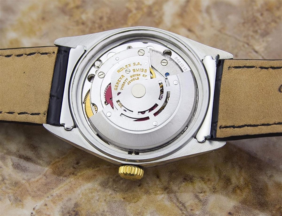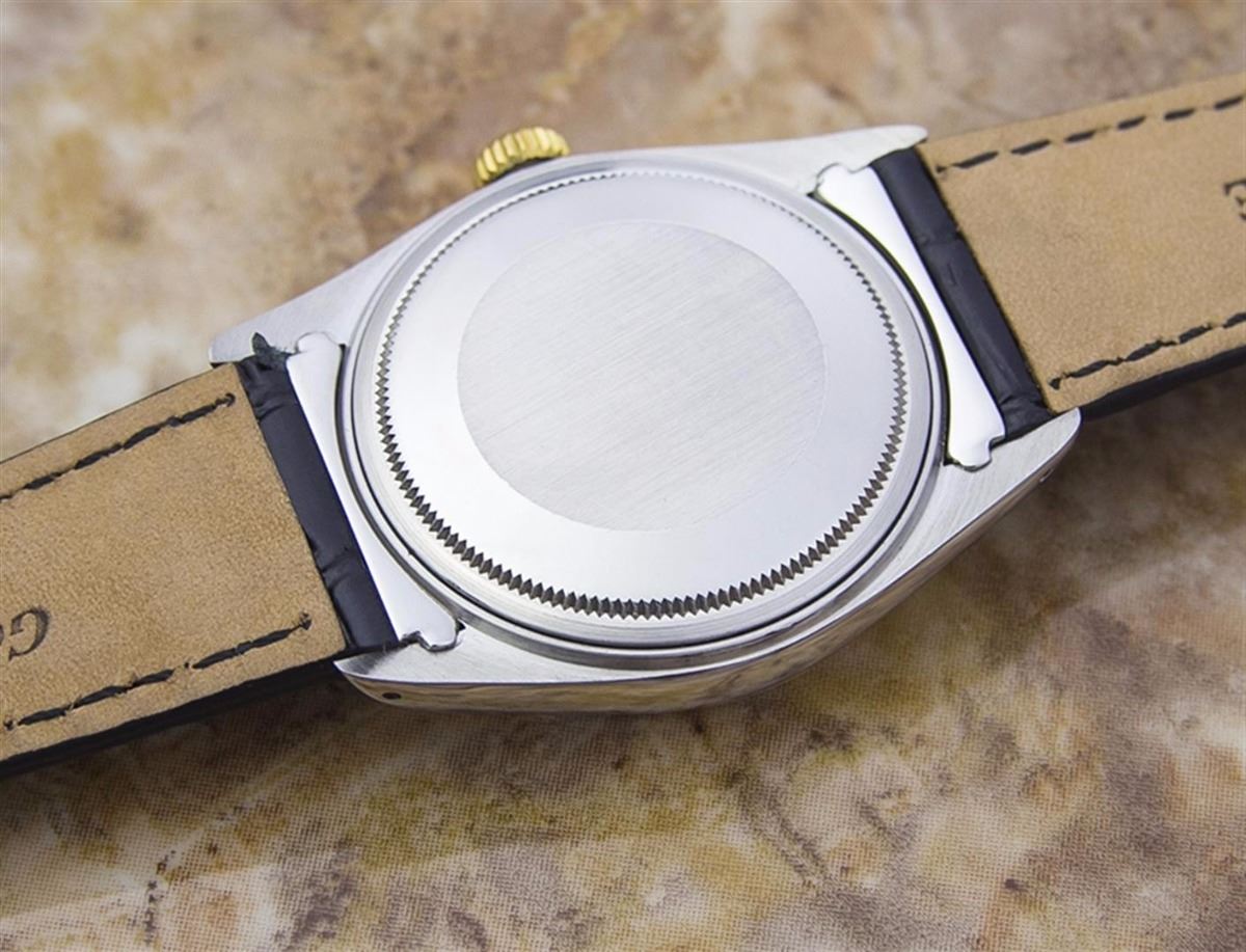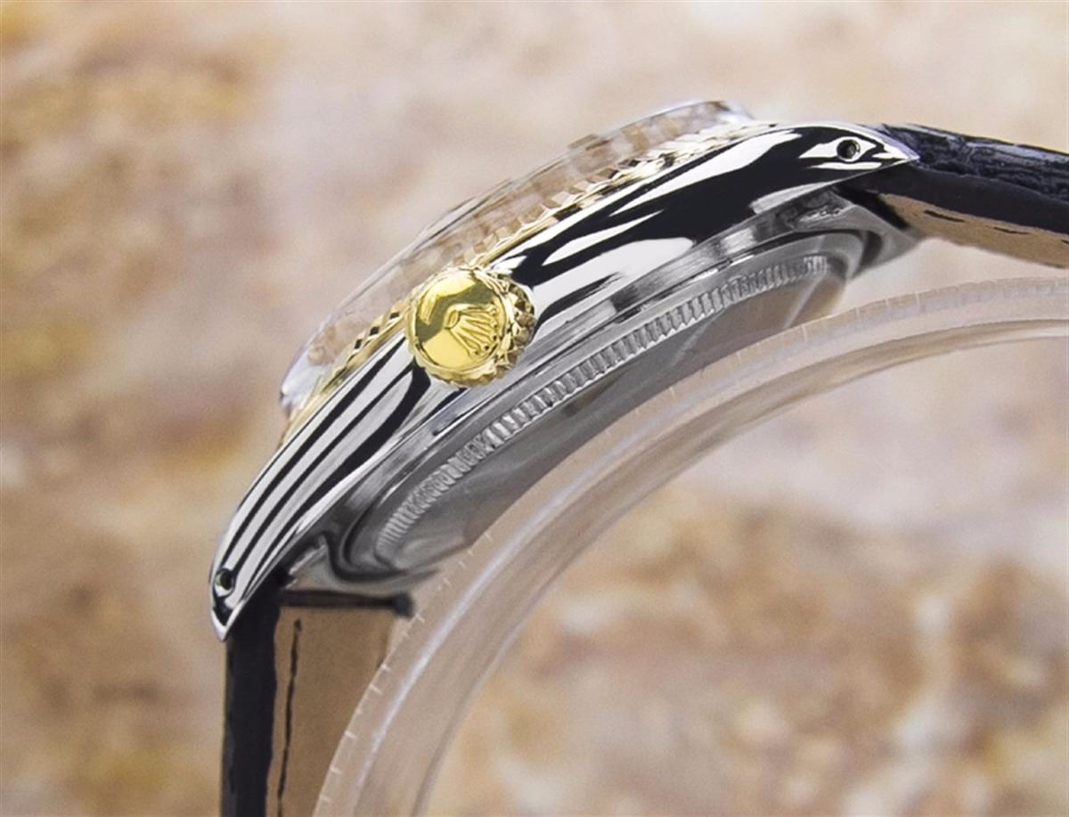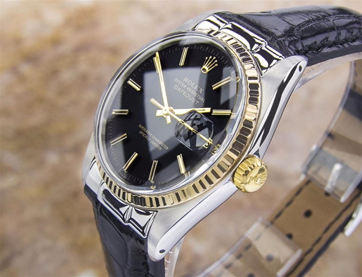 Rolex 1600 DateJust Two-Tone Automatic Watch. Brand: Rolex. Model: 1600 DateJust. Movement: Automatic. Case Material: Stainless Steel & SOLID GOLD. Crystal: ACRYLIC. Case Size: 44X36. Band: NEW LEATHER BAND WITH CUSTOM END LINK.