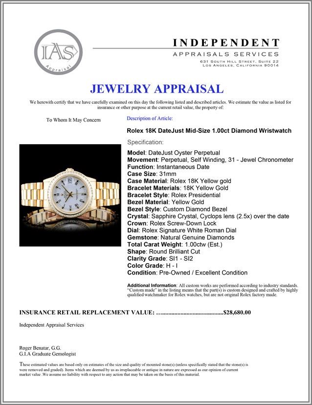 Dial: Rolex Signature White Roman Dial