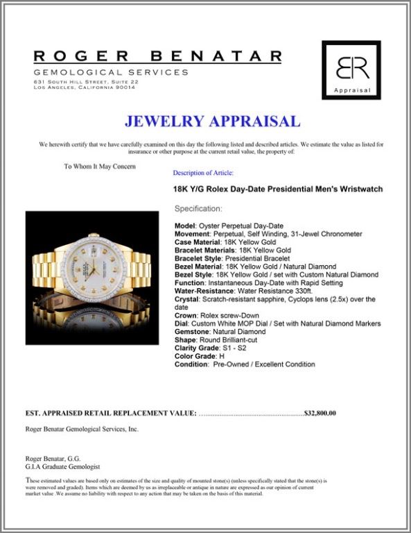 Dial: Custom White MOP Dial / Set with Natural Diamond Markers