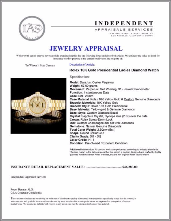 Case Material: Rolex 18K Yellow Gold & Custom Genuine Diamonds