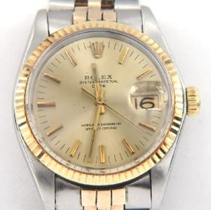 Rolex 18K Yellow Gold & Stainless Steel Oyster Perpetual Datejust Mens Watch.The total watch's weight is 82.4 grams.The size of watch head: 34 x 34 mm and 12 mm thick.The length of the watch is 6.5". Swiss Made. Water Resistant. Chain is 19 mm wide