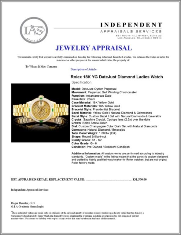 Regarding Appraised Jewelry and Loose Stones - Auctionfarm sends them out to a third party for Retail Replacement Value Appraisals, which are the most common. These types of evaluations are written for insurance needs. This would be the cost to replace the jewelry with an item of equal quality and kind, considered to be the current market price or the replacement value. This type of appraisal is done to protect you in the event of damage or loss of a valuable item. Our appraisals are conducted by independent 3rd Party appraisal firms that utilizes Certified GIA Gemologist. Appraisals should be used for verification of gemstone and/or metal weight, size, and grade only, not actual value. Appraisal value should be considered for insurance purposes only, not actual value, as price varies greatly from retail locations thru out the world. Items should not be purchased with the expectation to resell for appraisal price, or for profit.