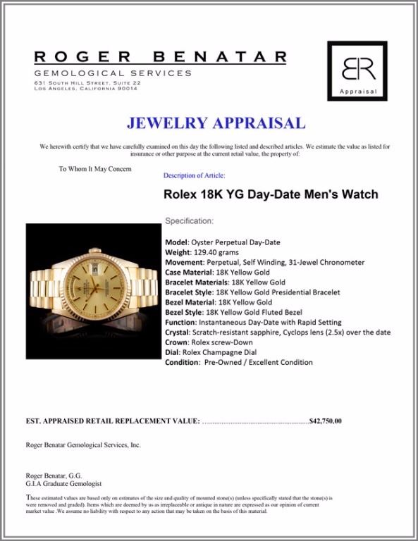 Bracelet Style: 18K Yellow Gold Presidential Bracelet