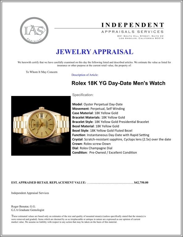Bracelet Style: 18K Yellow Gold Presidential Bracelet