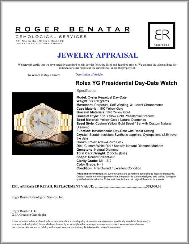 Bracelet Style: 18K Yellow Gold Presidential Bracelet