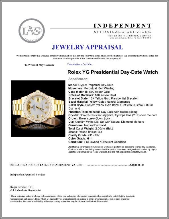 Bracelet Style: 18K Yellow Gold Presidential Bracelet