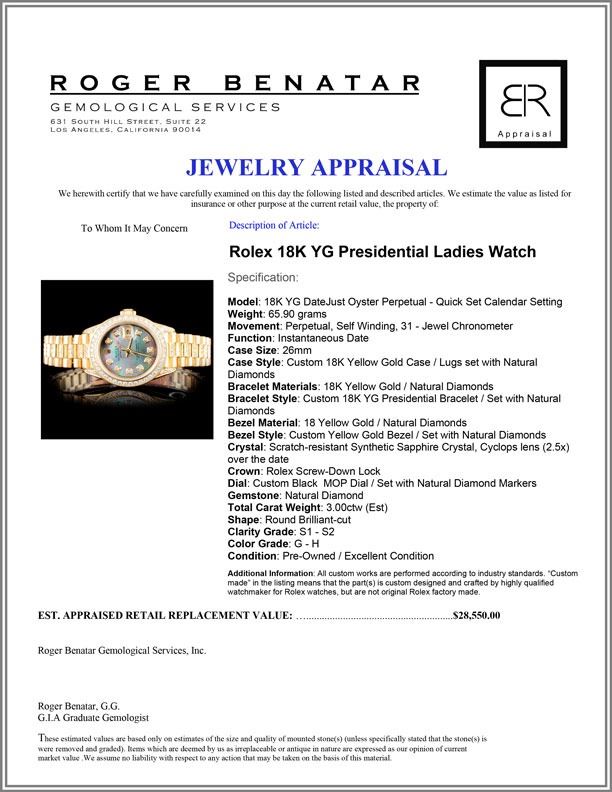 Bracelet Style: Custom 18K YG Presidential Bracelet / Set with Natural Diamonds