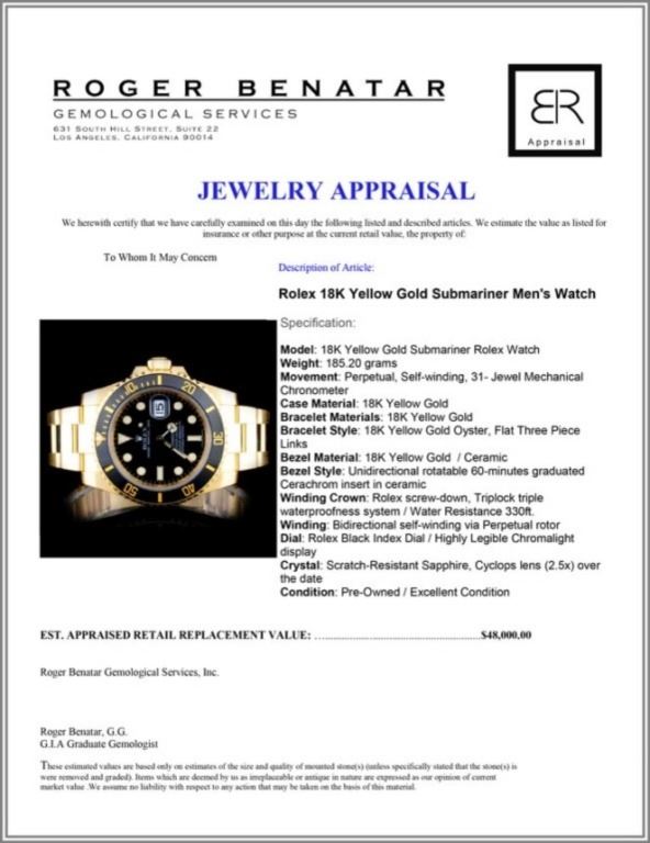 Model: 18K Yellow Gold Submariner Rolex Watch