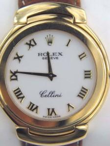 Rolex 18K Yellow Gold Cellini Leather Strap Watch.The total watch head weight is 72.9 grams.The size of watch head: 32 x 32 mm and 6mm thick.The length of watch: 6".Swiss Made.Water Resistant