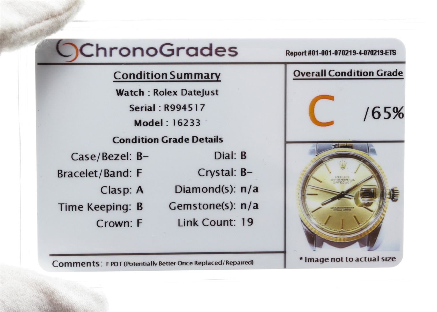 One Rolex 2 Tone Stainless Steel Yellow Gold Datejust Watch Ref 16233. Clasp Closure CON